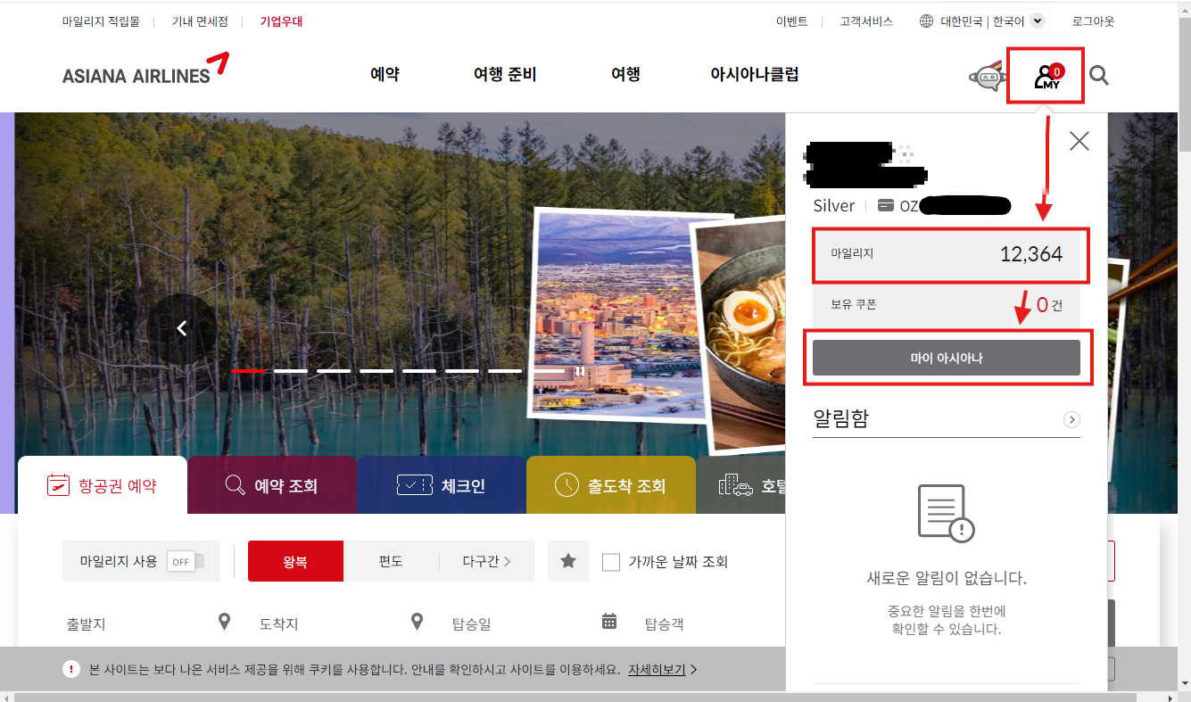 항공 마일리지 잃어 버리지 말고 조회 해봅시다~!! [아시아나 편]