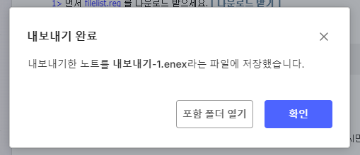 에버노트에서 필요한 문서를 내보내기 하여 .enex파일로 생성 처리합니다.
