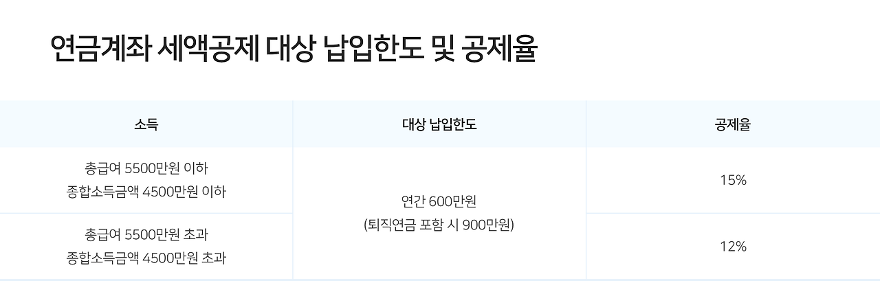 우선, 개인 연금 및 퇴직연금에 대해 연간 1,800만 원까지 납입할 수 있고, 여기서 최대 900만 원까지 세액공제를 받을 수 있습니다. 이 세액공제는 소득 수준에 따라 다르게 적용됩니다. 소득이 연 5,500만 원 이하일 경우, 납입한 금액의 16.5%를 세액공제 받을 수 있습니다. 반면, 소득이 이를 초과할 경우, 세액공제 비율이 13.2%로 줄어듭니다. 📉