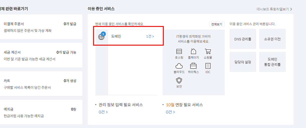 ※ 신규 도메인 개설이나 기타 설정의 경우 다른 블로그 참조 해주 시기 바랍니다. 제가 화면 캡쳐등을 못한 관계로.. ㅠ.ㅠ