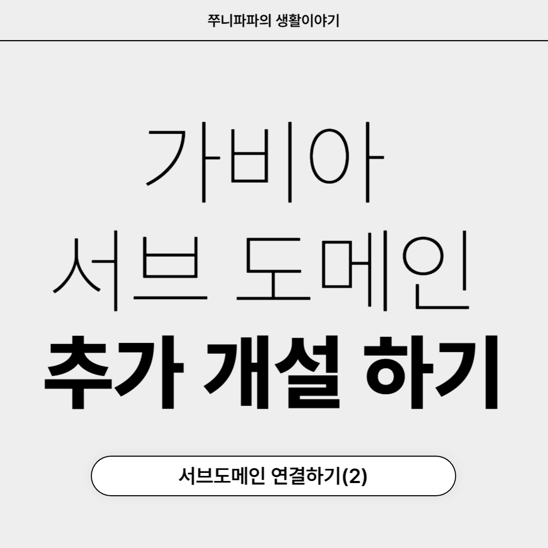 안녕하세요~!!! 경제적 자유를 꿈꾸는 쭈니 파파 입니다~!!! 오늘은 가비아에 등록한 서브 도메인을 "티스토리 블로그와 연결"을 해보도록 하겠습니다. 이전에 글 서브 도메인 개설에 관한 글은