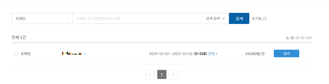 2. 도메인 선택 -> 관리