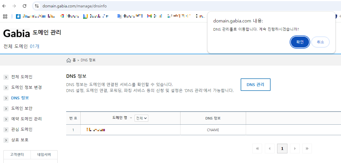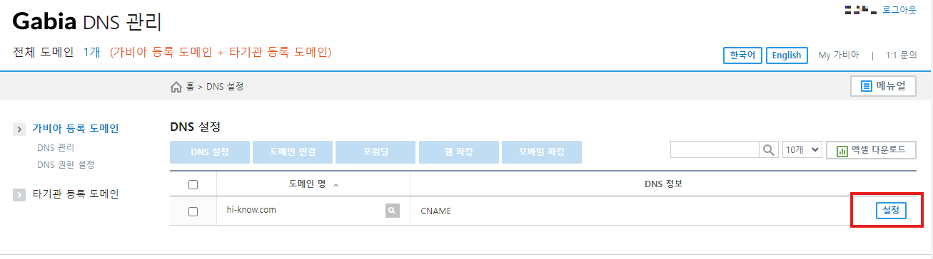 - 가비아 로그인후 도메인 정보를 선택 합니다.