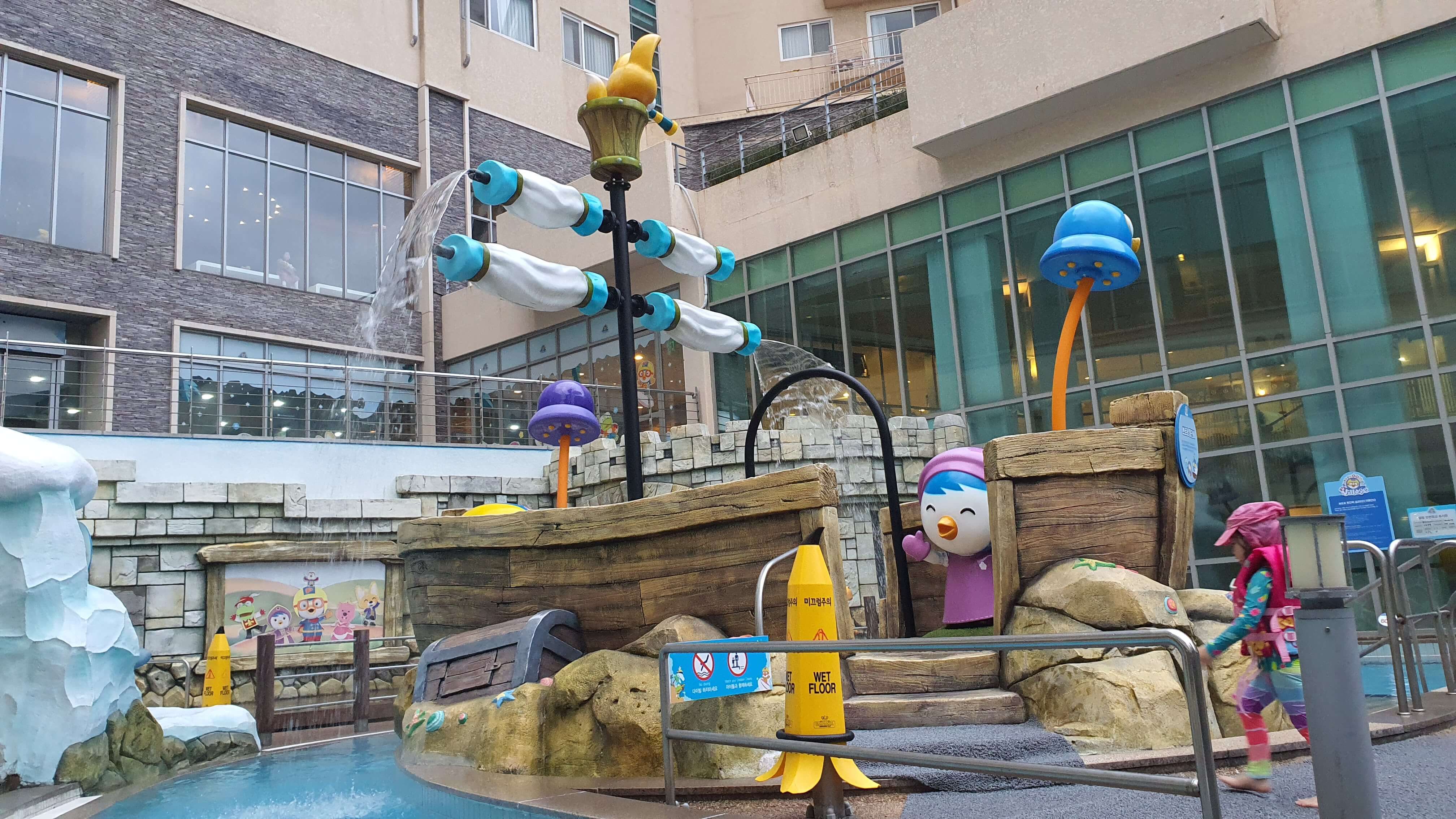 고래 분수가 있는 물놀이장이 있는데요.. 사진을 자세히 보셔야 하지만 뽀로로 분수 아래로 물고기 꼬리 처럼 보이는곳이 있죠? 저기가 엄청 불편합니다. 발에 계속 걸립니다.