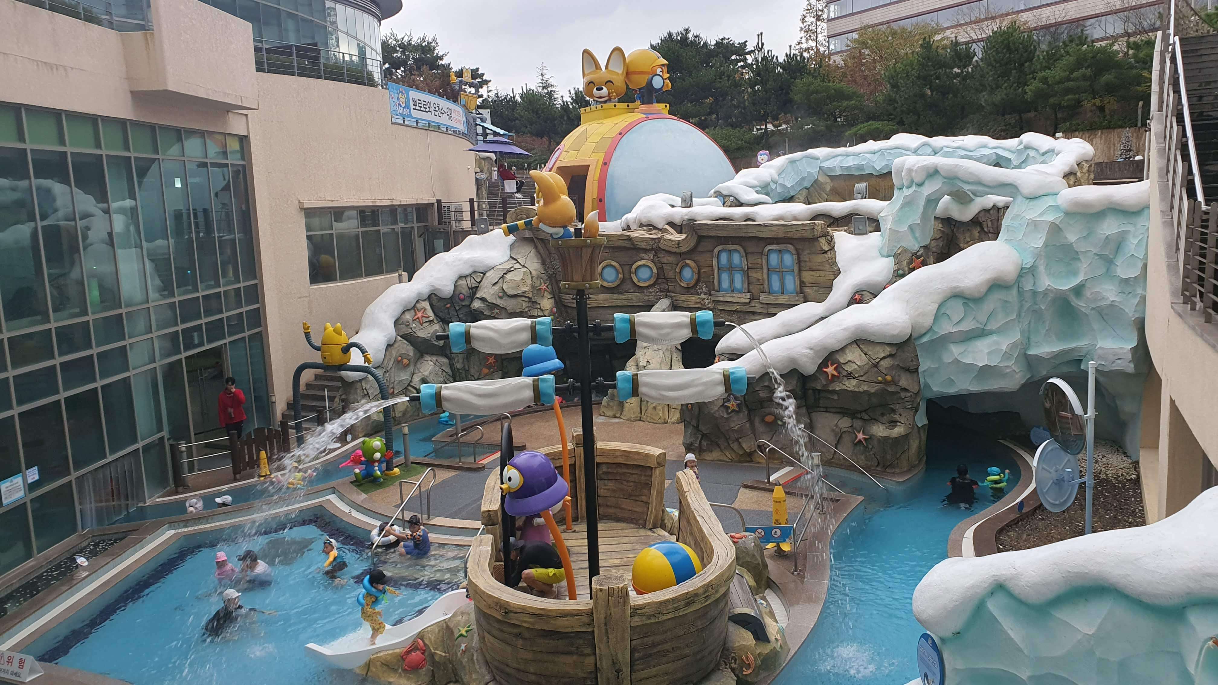 뽀로로 아쿠아빌리지의 경우 야외 / 실내 수영장으로 구분되어 있구요. 튜브에 공기를 넣고 나면 자연스럽게 눈앞에 보이는 야외랑 연결되는 유스풀을  가장먼저 이용하지 않을까 생각이됩니다.