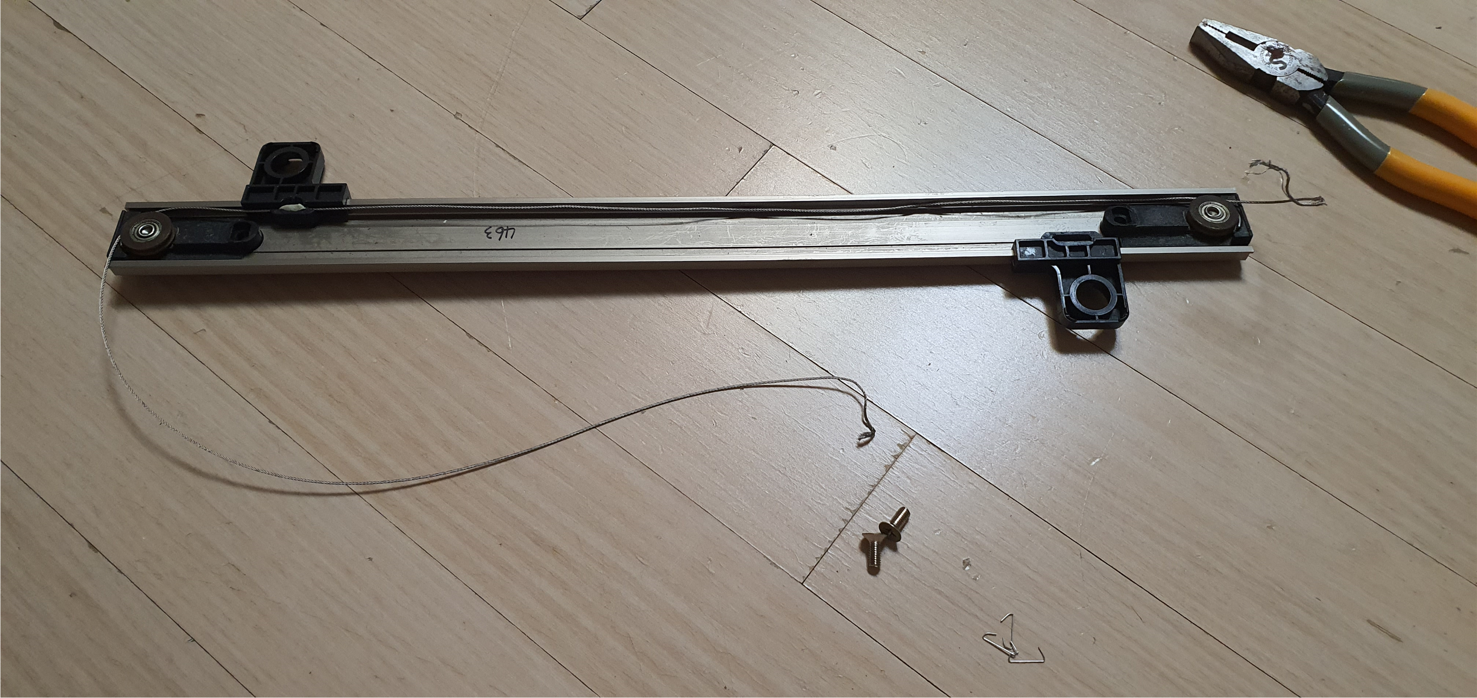 와이어 위치가 상단 내부에 숨겨져 있어, 적어도 레일 커버와 상단 힌지는 분해해야 와이어 교체가 가능합니다.